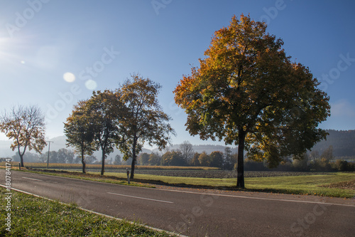 © Martina, Naklejka premium Sunrise on a tree-lined country road in Germany