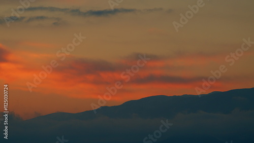 © artifex.orlova, Obraz premium Sunrise On Mountain Background. Sunrise Landscape With Mountain. Decorative. Real time.