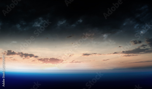 © Sergey Nivens, Fototapeta premium Sunrise on planet orbit, space beauty