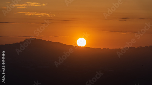 Obraz premium Sunrise on Santorini island over the town of Akrotiri
