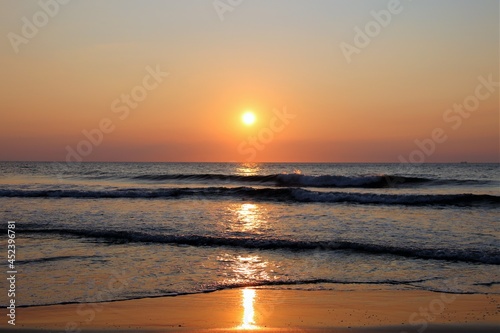 Fototapeta premium Sunrise on the beach watching the ocean waves
