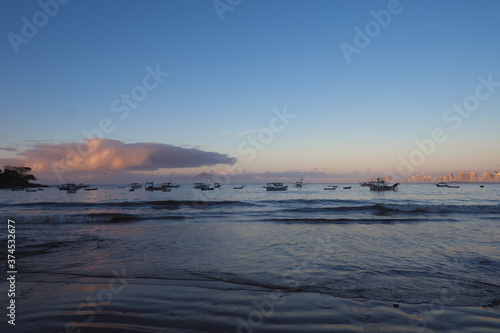 Fototapeta premium sunrise on the beach with fishing boats