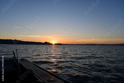 Naklejka premium Sunrise on the Columbia river, viewed from a fishing boat.