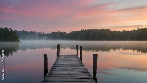 © Dove, Naklejka premium sunrise on the lake Dawn Serenity Tranquil Lakeside Morning