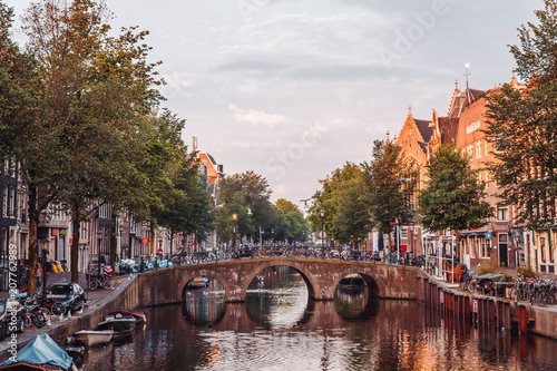 © MKavalenkau, Fototapeta premium sunrise on the streets and canals of amsterdam