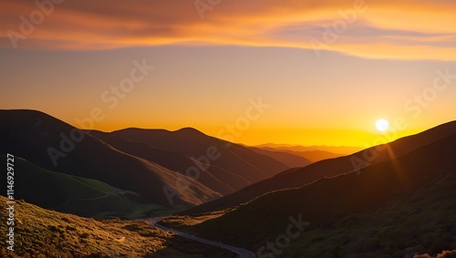 © Samad, Naklejka premium Sunrise on the top of the mountain 4k background