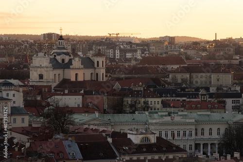 © Michael Niessen, Fototapeta premium sunrise or sunset above the Old Town of Vilnius, Lithuania