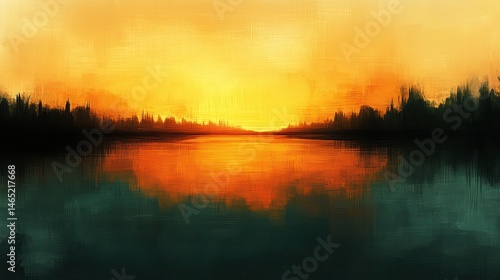 © Agang, Obraz premium Sunrise or sunset over a tranquil lake reflecting vibrant colors