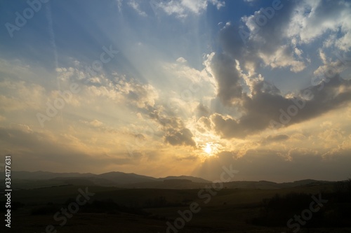 Obraz premium Sunrise or sunset over the hills and meadow. Slovakia