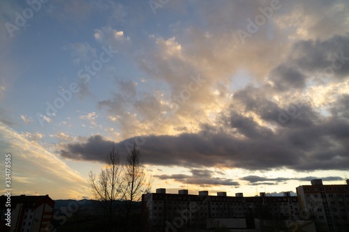 © Valeria, Obraz premium Sunrise or sunset over the hills and meadow. Slovakia