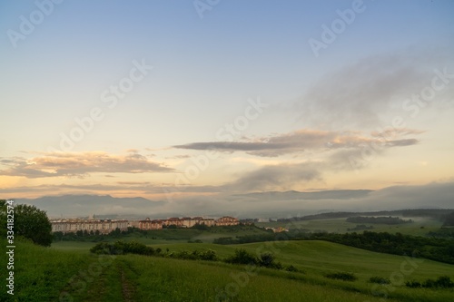 Obraz premium Sunrise or sunset over the hills and meadow. Slovakia