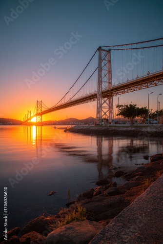 © Berkah, Obraz premium Sunrise over a cable-stayed bridge