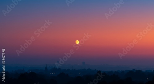 © DhanaStudio, Naklejka premium Sunrise over a city - peace and tranquility - environmental awareness media