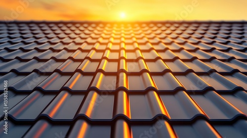 Obraz premium Sunrise Over a Glossy Metal Roof with Warm Light Reflections