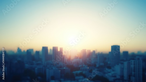 © RizArt, Fototapeta premium Sunrise over a hazy cityscape.