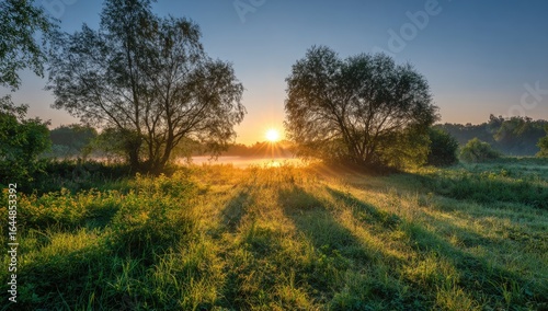 © Grafis, Fototapeta premium Sunrise over a misty field