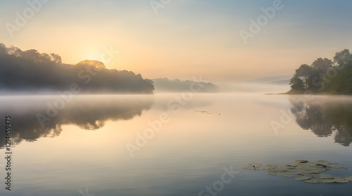 © yean, Fototapeta premium Sunrise Over a Misty Lake