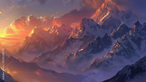Obraz premium Sunrise over a Mountain Range: Capturing the first light of day illuminating...