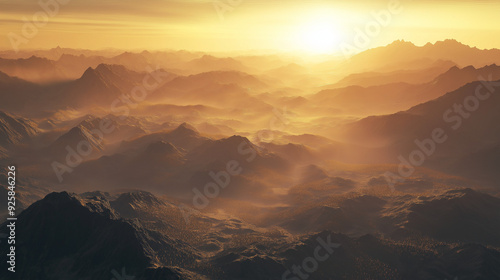 © gfx_yasir, Fototapeta premium Sunrise over a mountain range with fog