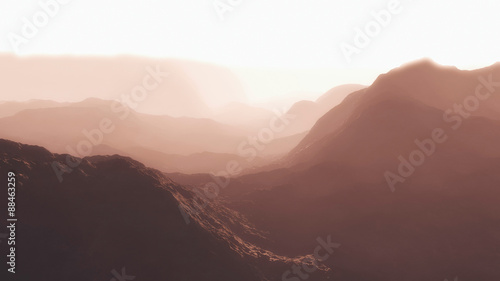 © ysbrandcosijn, Fototapeta premium Sunrise over a mountainous landscape