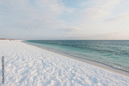 © NFTNexus, Obraz premium Sunrise over a snowy coastline by the sea