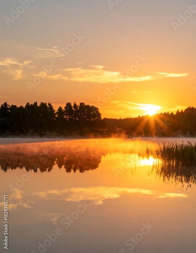 © Jani, Obraz premium Sunrise over a tranquil lake (1)