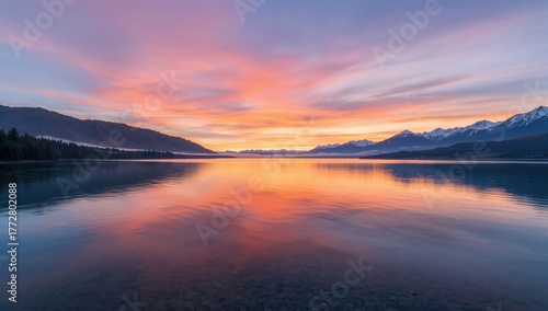 Naklejka premium Sunrise over a tranquil mountain lake