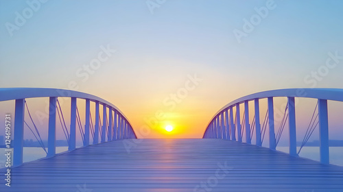 Fototapeta premium Sunrise over a tranquil white arched bridge