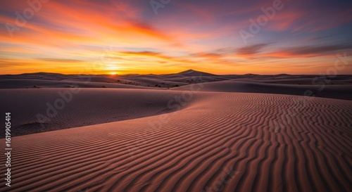 © Wahyu, Fototapeta premium Sunrise over a vast, sandy desert landscape