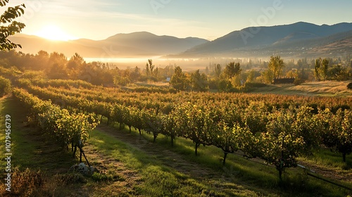© SANDJAYA, Fototapeta premium Sunrise Over a Vineyard