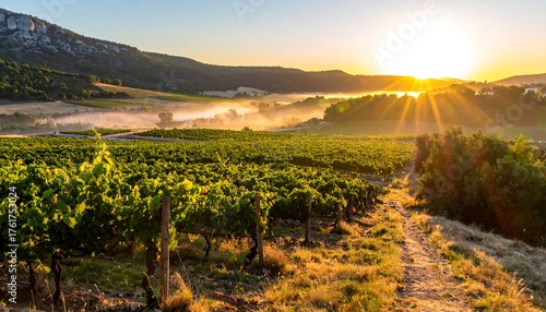 © Adab, Naklejka premium Sunrise over a vineyard (1)