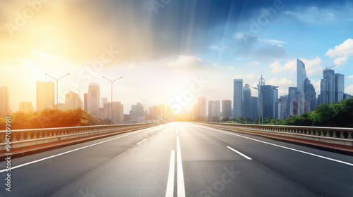 © evening_tao, Fototapeta premium Sunrise Over an Empty City Highway