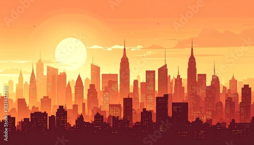 © Tara, Obraz premium Sunrise over cityscape silhouette.