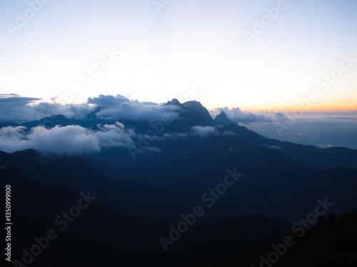 © 'Azyyati, Fototapeta premium Sunrise over Cloud Covered Mountains