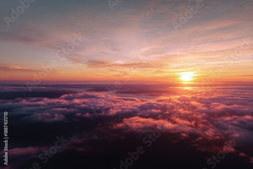 © Hazel, Fototapeta premium Sunrise Over Clouds with Golden Light