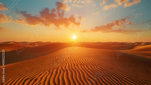 © LemonellArt, Naklejka premium Sunrise Over Desert Dunes