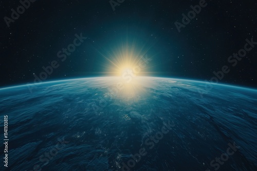 Fototapeta premium Sunrise over Earth as seen from space with a vibrant glow illuminating the...