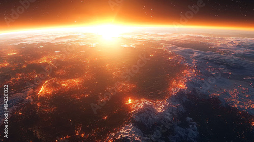 © creative, Fototapeta premium Sunrise over Earth, city lights.
