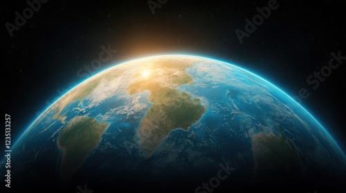 Fototapeta premium Sunrise over Earth, space background, global view, environmental awareness