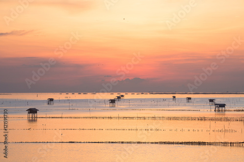 © Bill45, Fototapeta premium sunrise over fisherman village by the sea