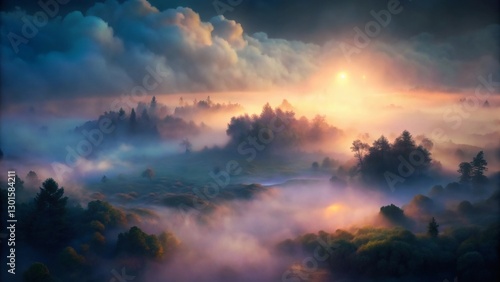 © Ragnar, Obraz premium Sunrise over Foggy Forest Landscape