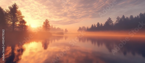 Fototapeta premium Sunrise over Foggy Lake