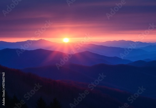 © Shehub, Fototapeta premium Sunrise Over Majestic Mountain Ranges