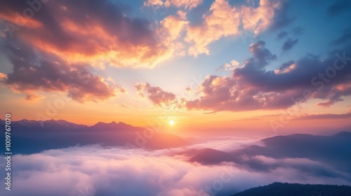 © akhmad, Fototapeta premium Sunrise Over Misty Mountains