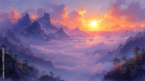 © Muamanah, Obraz premium Sunrise Over Misty Mountains