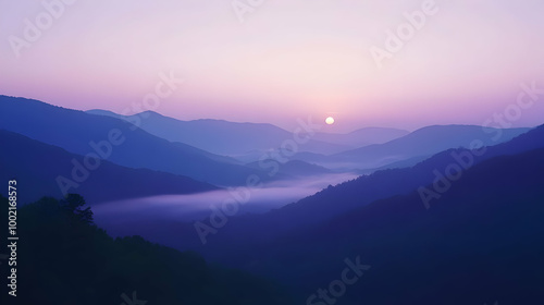 Obraz premium Sunrise Over Misty Mountains: A Serene Landscape