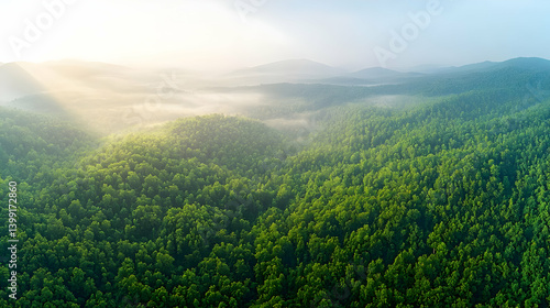 © Parsudi, Fototapeta premium Sunrise Over Misty Tropical Forest