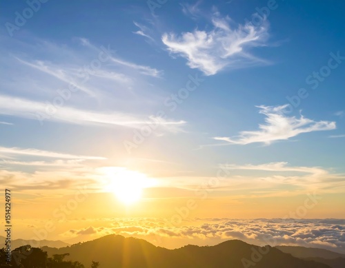 © Nunung, Obraz premium Sunrise over mountain cloudscape