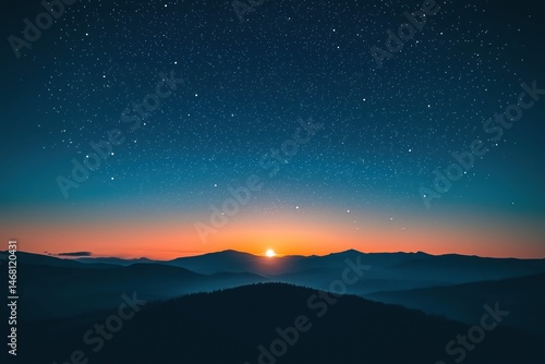 © Nira, Fototapeta premium Sunrise over Mountain Range at Night