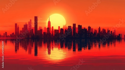 © mho, Fototapeta premium Sunrise over New York City skyline reflected in water